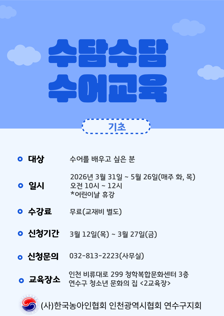 연수구지회 수어교육 기초반 개강 안내