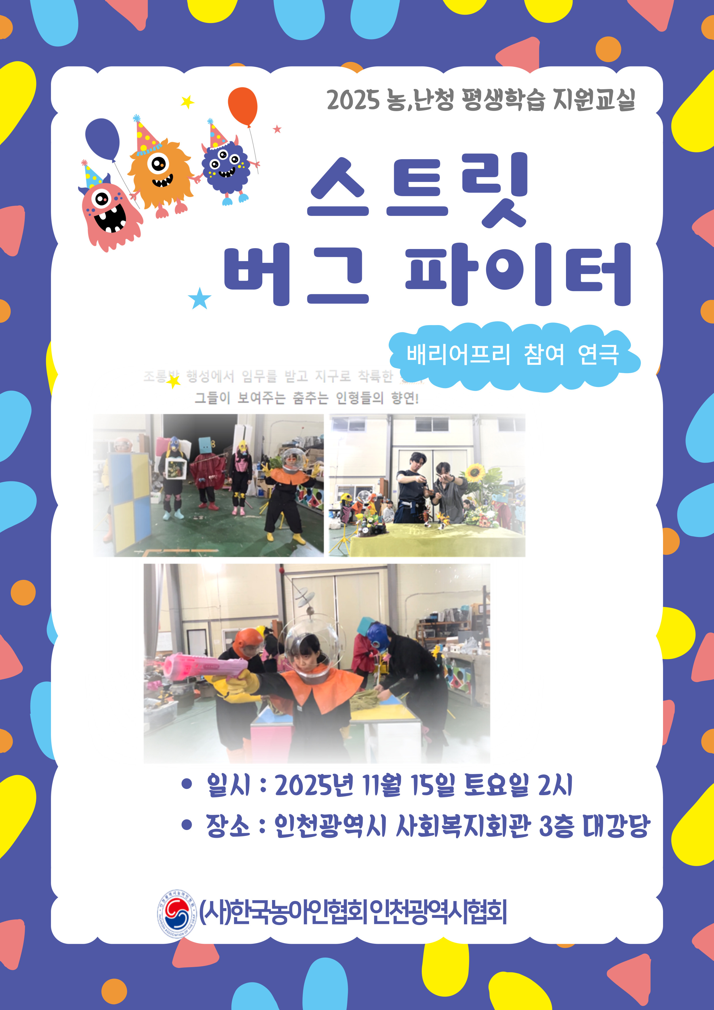 - 사업명 : 2025 귀농극단 조롱박 배리어프리 참여 연극 [스트릿 버그 파이터]