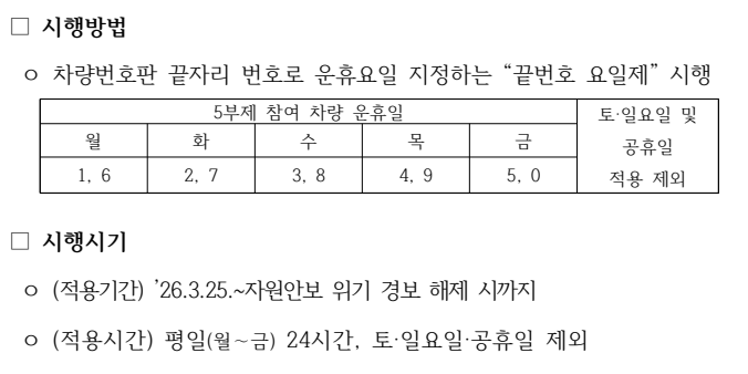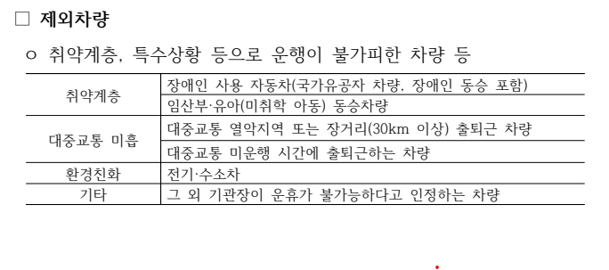 *모든 출입차량은 5부제 대상에 해당됩니다./제외 차량 하단 내용 참고