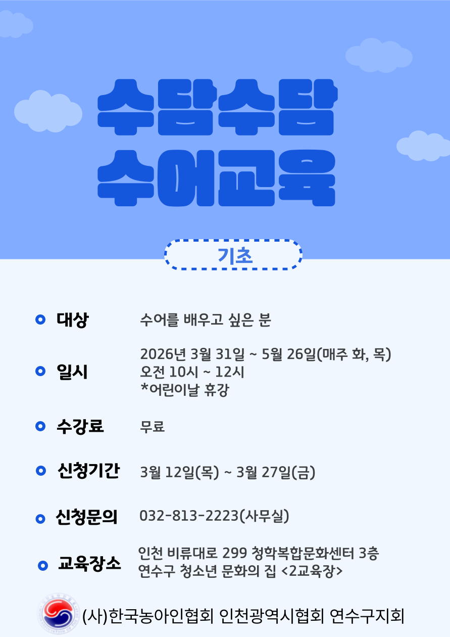 연수구지회 수어교육 기초반 개강 안내