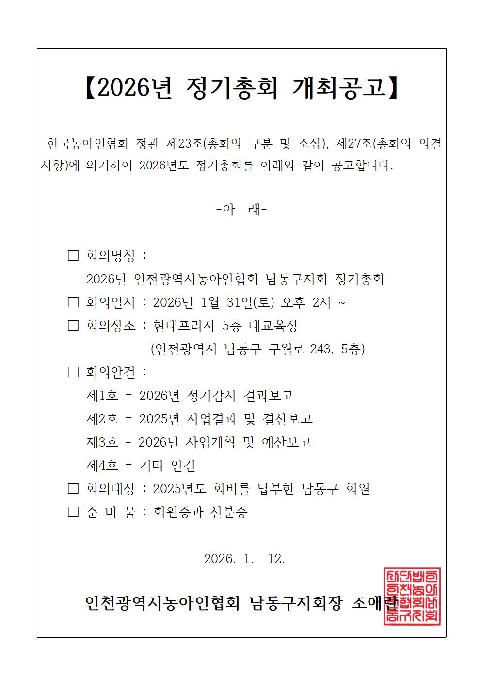 【2026년 정기총회 개최공고】